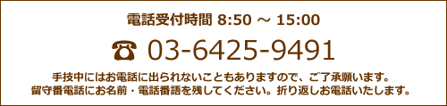 ● 手技中にはお電話に出られないこともありますので、ご了承願います。